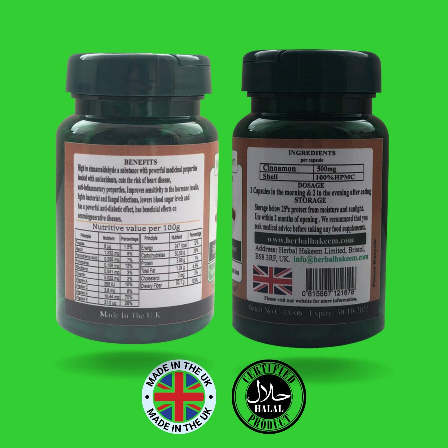 - Our cinnamon capsules are free from any additives, non-GMO, and suitable for vegans. We use small capsules that are easy to swallow. Our capsules are filled In a GMP facility, licensed by the UK Medicines & Healthcare products Regulatory Agency (MHRA).